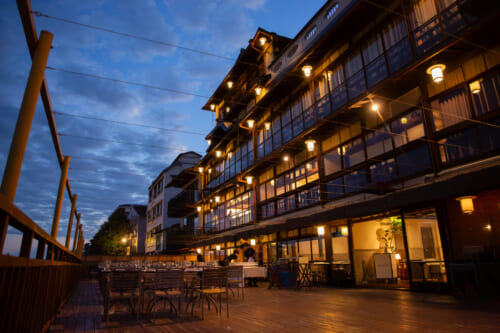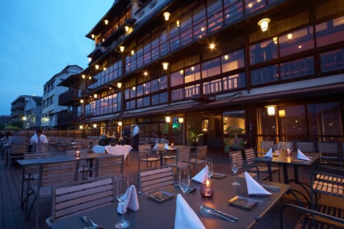 春は高瀬川を覆う花筏。秋は錦を織り成す紅葉。今や夏の京都の風物詩となった鴨川の「川床」。江戸時代から旅籠やお茶屋など京の老舗が無数に軒を連ね、様々な文学の舞台としても知られる木屋町通。古都の趣が随所に見られるこの界隈でゆるやかな時の流れに身を置きつつ、静かに佇むのが有形文化財として2012年に登録された「鮒鶴」という名の五層楼閣様式の和風建築です。