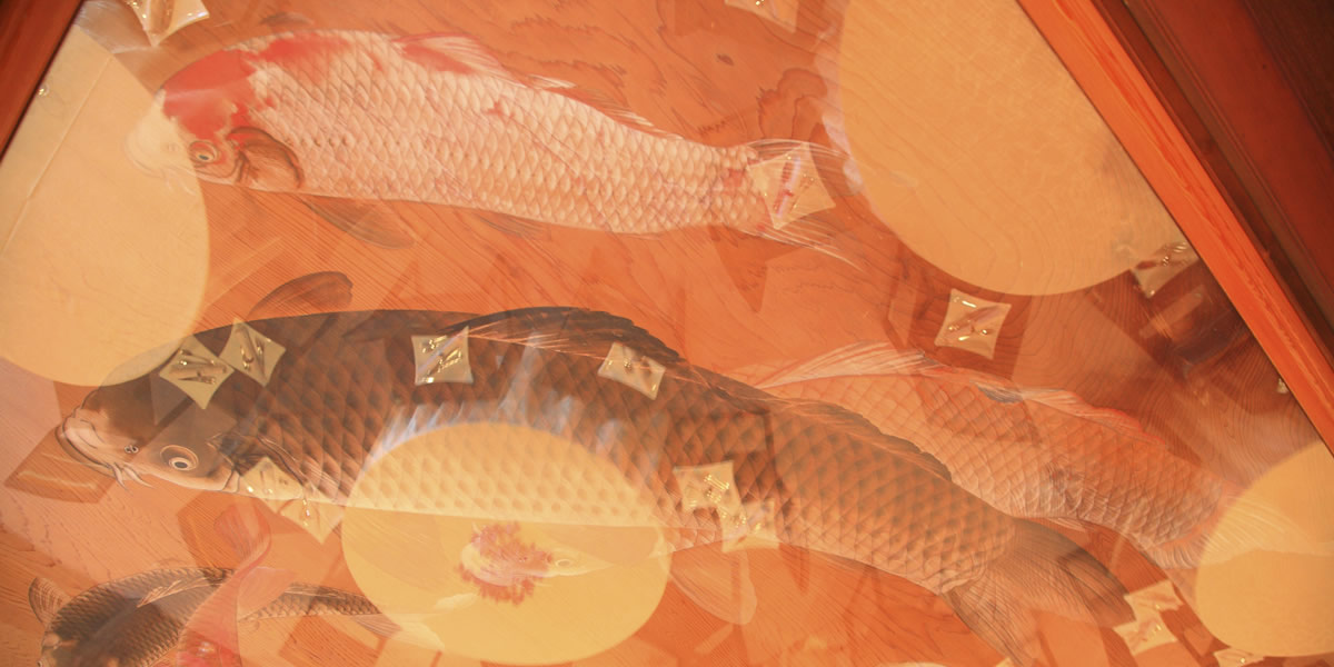 鯉を描いた小村大雲作の天井画のある“Gallery Room”