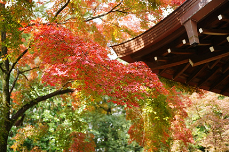 境内は、新緑や紅葉、9月には参道から社殿まで