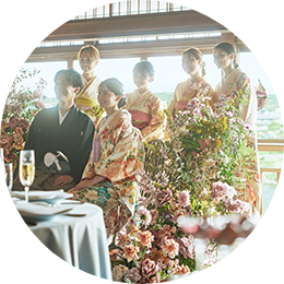神前式後の和装はもちろんのこと、お色直しでドレスも映える美空間。館内はバリアフリー設計で付帯設備も充実。