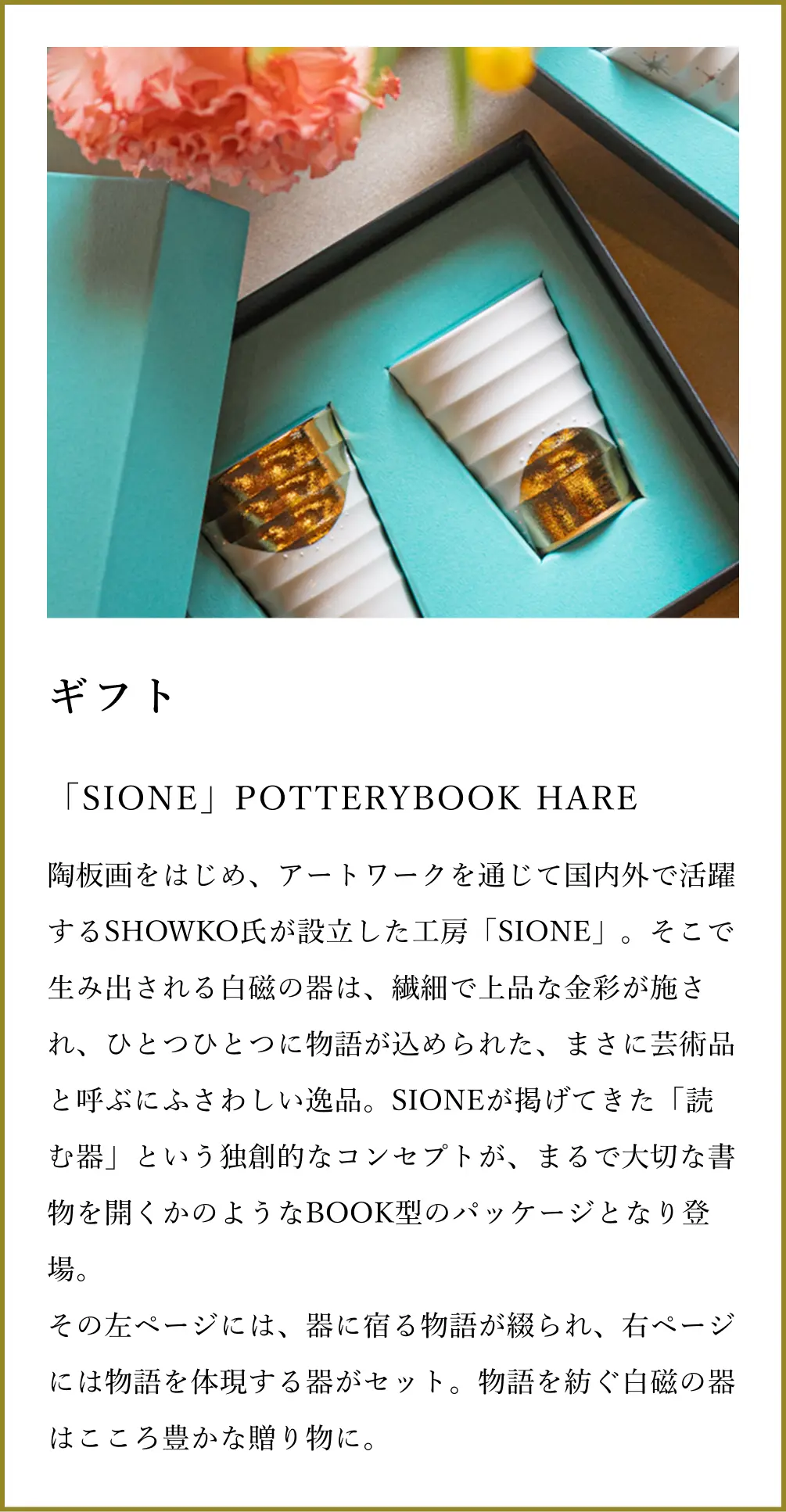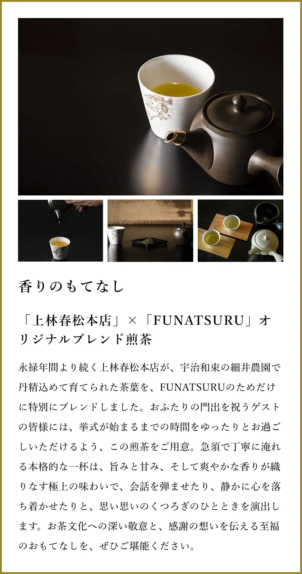 ゲスト自身が選び、手に取り、祝杯を交わす。という体験として贈られるギフトも