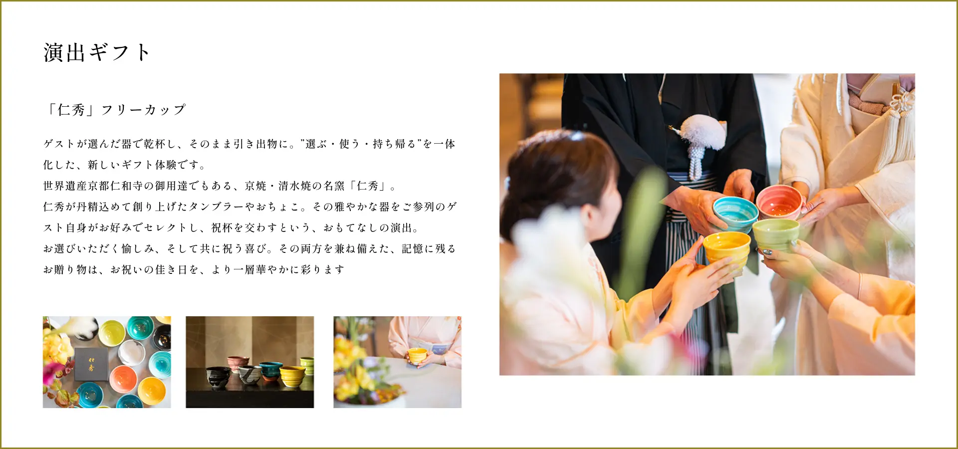 引出物には、京都の伝統文化を今に紡ぐ職人たちの逸品を。