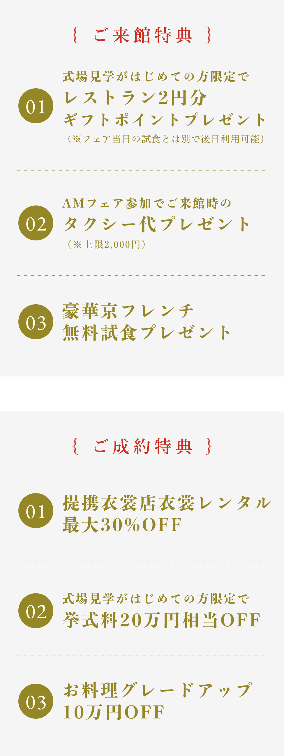 会場見学はもちろん、極上フレンチの試食、結婚式準備やお見積りのご相談はブライダルフェアで承っております。