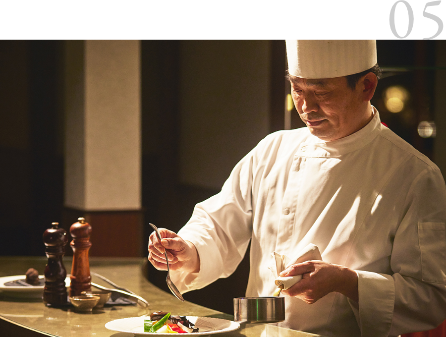 受賞歴多数の歴代シェフの想いが詰まったメニューをご用意。特にスペシャリテの前菜「海の幸のジュレ~ひまわり~」はパリ市市長賞金賞を受賞したここでしか味わえない逸品。