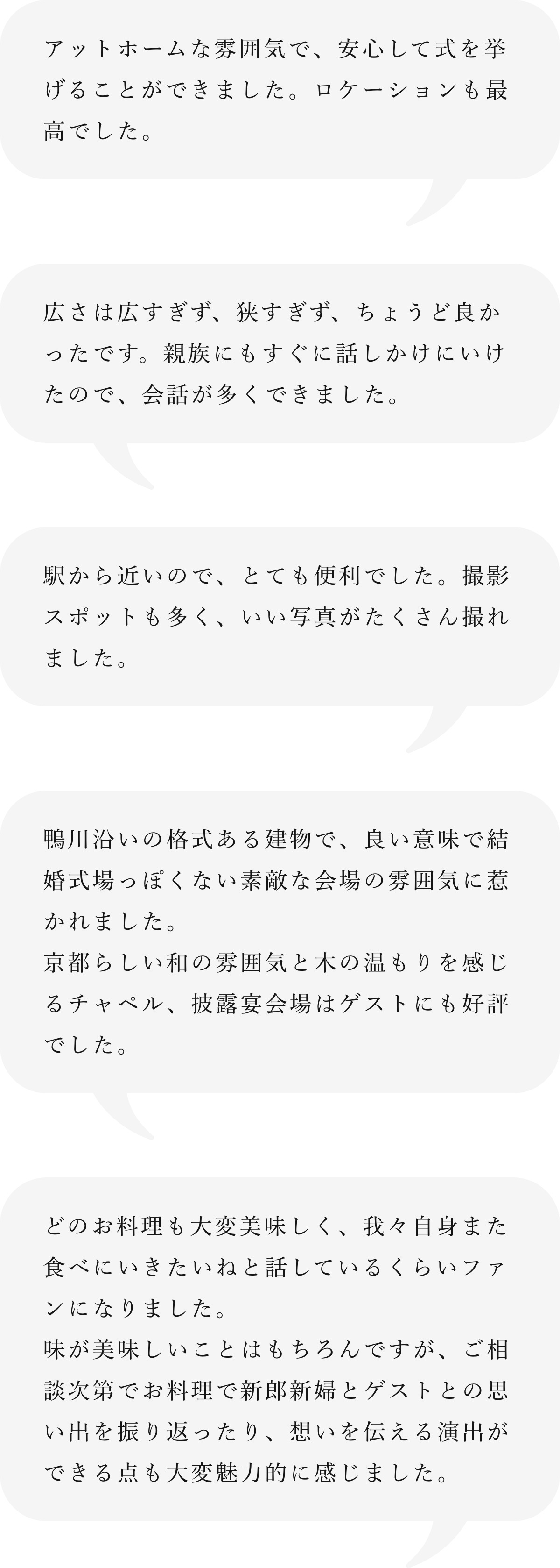 実際に少人数ウエディングを叶えられた先輩カップル様からの口コミ抜粋を抜粋しました。